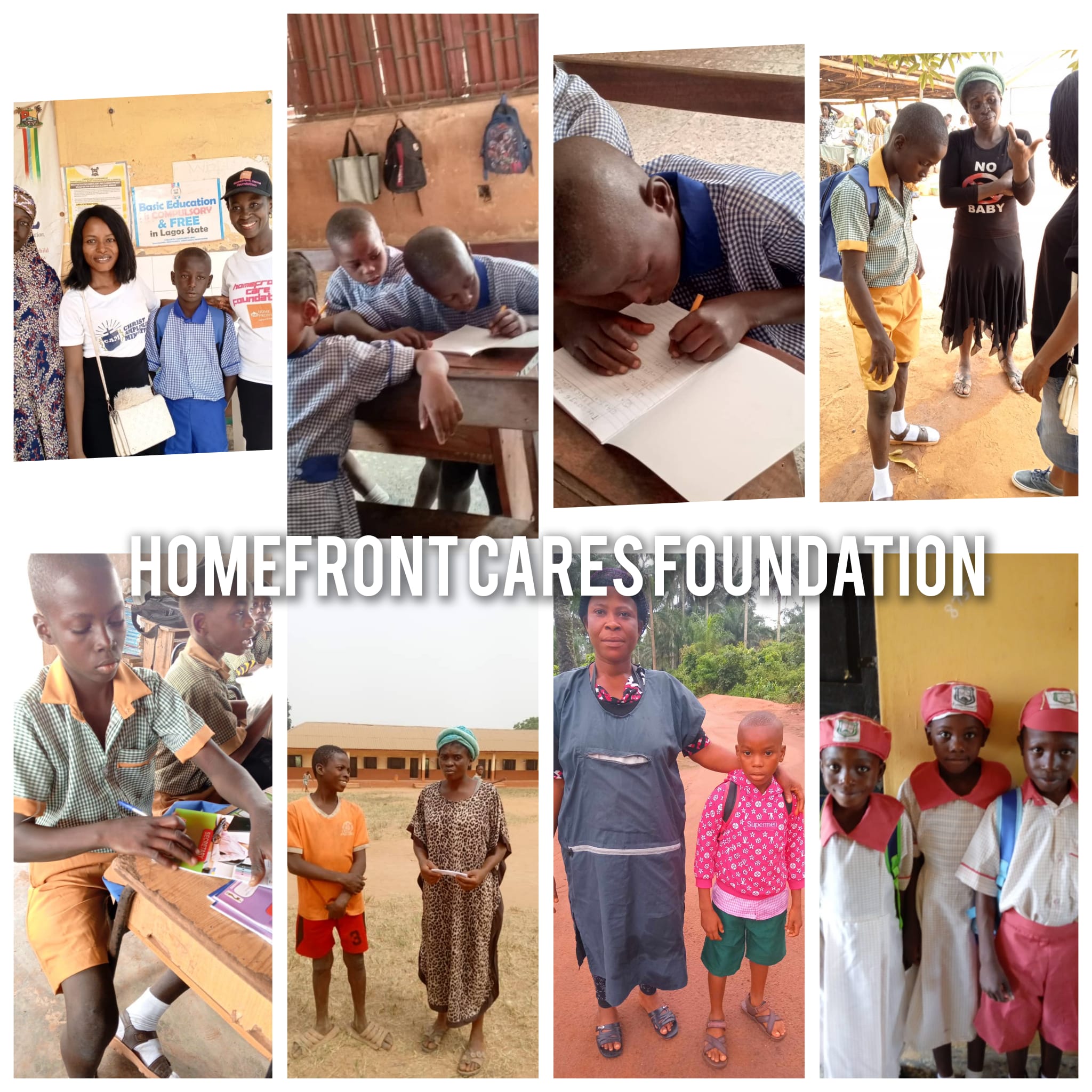 We have continued to pick displaced and destitute children from the streets, motor parks, and under the bridge ... to give them an education and a better life. One of our major successes in the drive to change the lives of these children is our scholarship scheme project that has helped sponsor tens of children to school. We don't just enroll them in school and pay their school fees and every material needed for their schooling, WE FOLLOW UP ON THEM IN CLASS AND THEIR PROGRESS IN SCHOOL. We also try to reach any family member or their guardian to get them involved in the lives of these children. Homefront Cares Foundation is not just another foundation, we are targeting to make more children a champion of tomorrow.